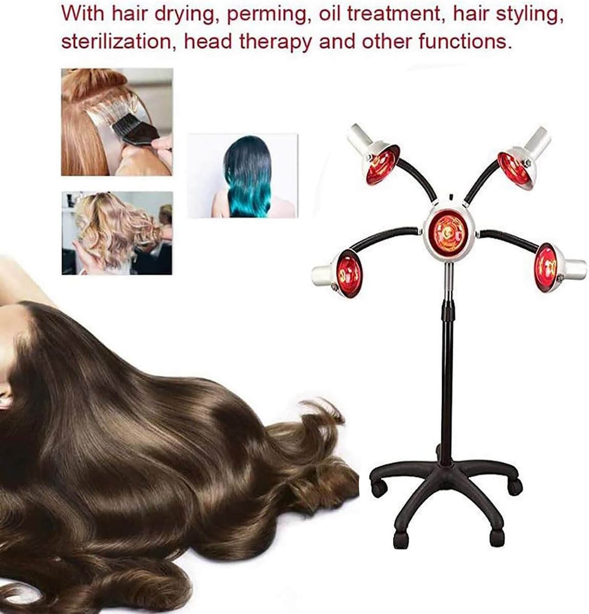 750W Infrared Heat Lamp Red Light,5 Head Portable Floor Hair Dryer Stand Up Color Processor Styling Perming Dryer Accelerator,Hairdresser Salon Barber Equipment